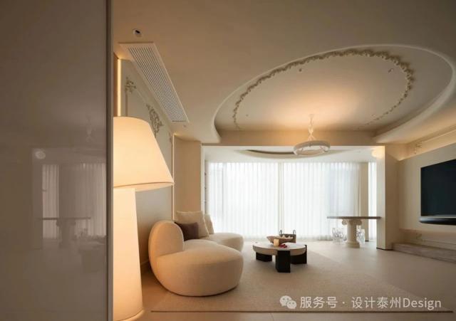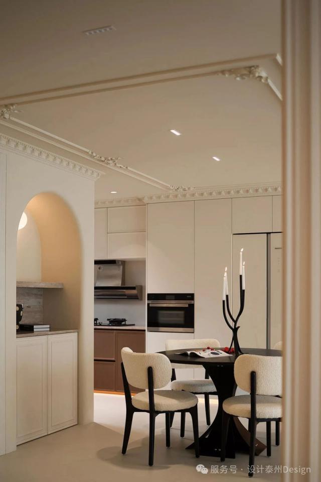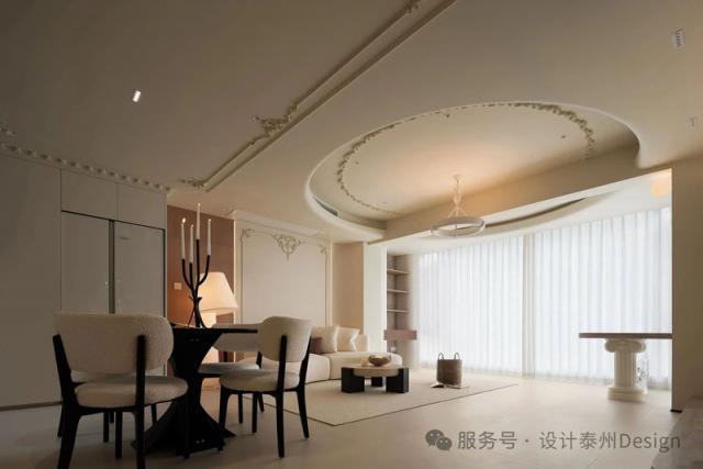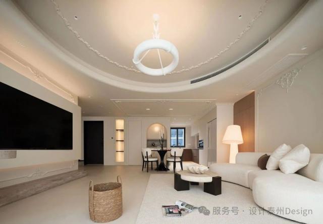 陽(yáng)光穿過(guò)落地窗,灑在米白色調(diào)的空間里,弧形天花板與拱門(mén)輪廓如同跳動(dòng)的音符,將客廳、餐廳與休閑區(qū)自然串聯(lián)。這里沒(méi)有生硬的隔斷,只有家人笑語(yǔ)間的自然流動(dòng)。